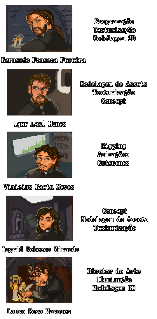 Direção de Arte, Level Design, Iluminação do jogo, Modelagem 3D de diversos Assets, Modelagem do Personagem Principal, Modelagem do Hero Asset a estátua de Anjo, Texturização de diversos assets, Texturas modulares do Monastério, Concept Art do Monastério.